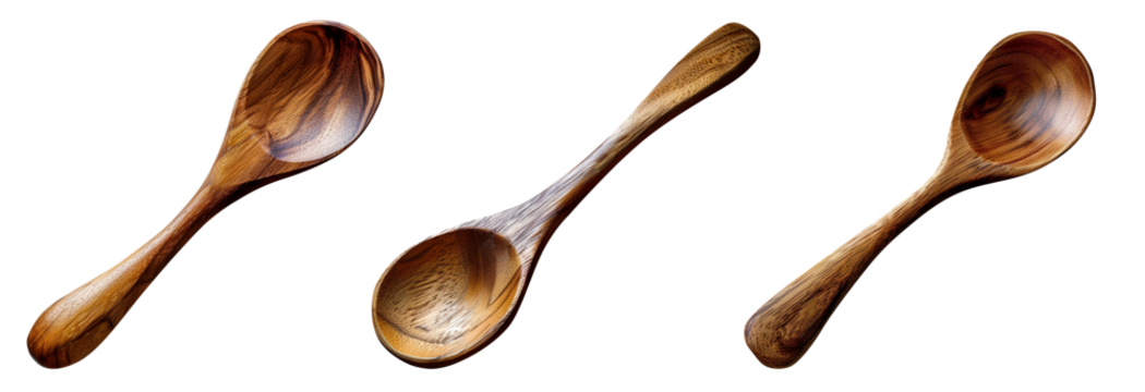 Set of wooden spoons isolated on transparent background, natural wood kitchen utensils for cooking, rustic culinary tools, eco-friendly tableware