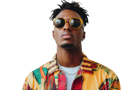 Confident man wearing sunglasses in casual t-shirt transparent background