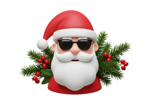 Isolated Cool Santa Sunglasses Christmas Branches Berries