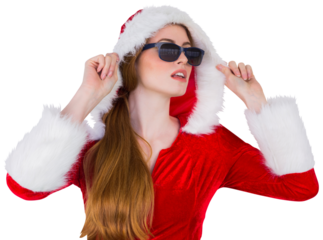 Transparent image of woman in santa dress with santa hat, posing at christmas