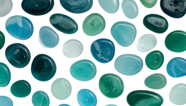 “Floating Colorful Glass Beads: Vibrant Orbs in Warm and Cool Tones on White Background”