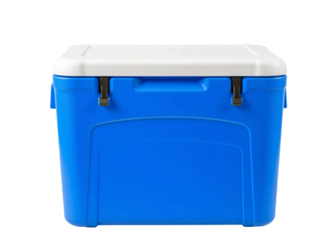 Large blue plastic cooler isolated with transparent background