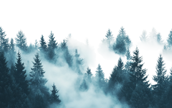 Transparent forest landscape with isolated trees