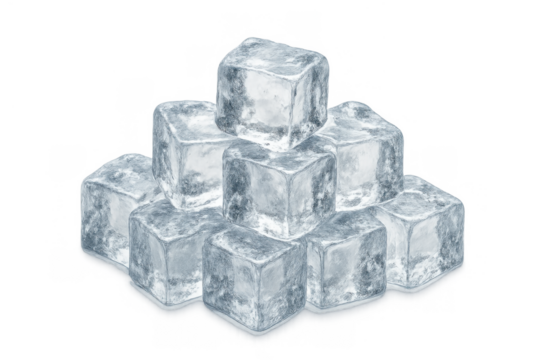 Stack of translucent ice cubes forming a pile, chilling drinks and cooling beverages with frozen water