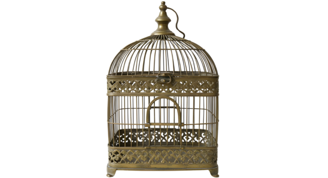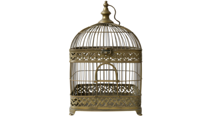 Ornate decorative birdcage for home decor isolated PNG with Transparent Background