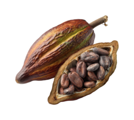 Cocoa beans harvesting tropical farm food natural isolated on transparent background, png