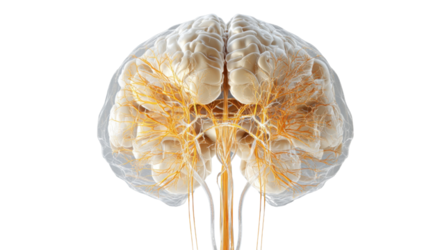 Detailed anatomical model of human brain cerebral cortex and cerebellum structure and function transparent background