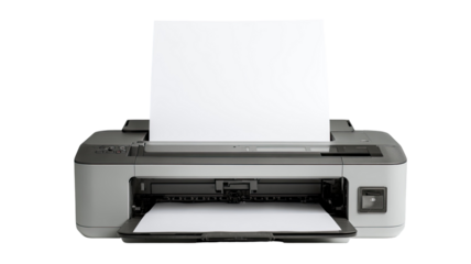 Printer display with white sheet paper printing device office technology equipment document output machine copy hardware electronic isolated on white background
