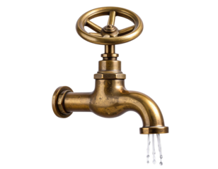 Old Brass Water Tap with Dripping Water Drop Isolated on Transparent Background.