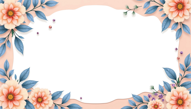 Elegant floral frame border with soft peach background for copy space or invitation design isolated on transparent background