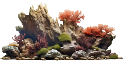 Colorful Coral Reef Ecosystem with Tropical Fish ocean isolated on a transparent background