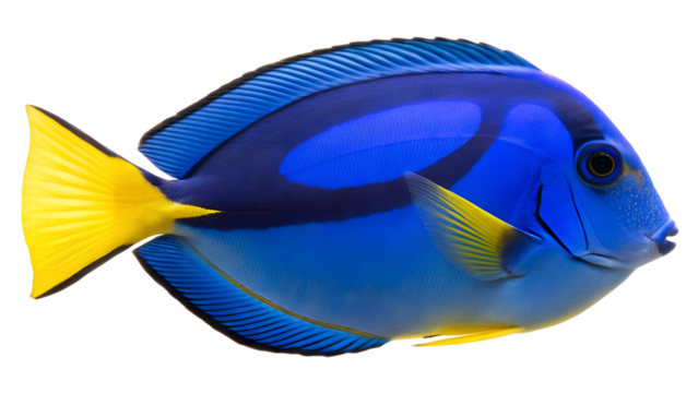 Powder blue tang fish closeup on isolated background