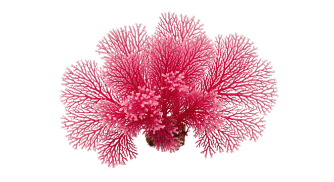 Red coral branch, vibrant marine ocean element with intricate detail. This delicate seaweed plant displays beautiful aquatic life texture isolated on transparency background
