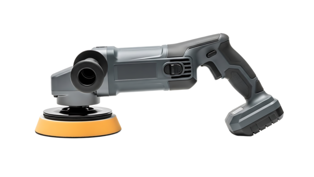 Cordless Electric Polisher with Yellow Buffing Pad on White Background