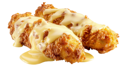 Fried chicken cordon bleu with melted cheese on white transparent background