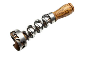 Crafted metal and wood apple corer showcasing intricate design and functionality for kitchen use isolated on transparent background