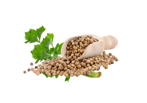 Fresh coriander herb bunch tied with twine isolated on transparent background