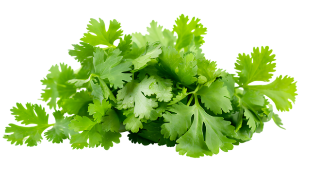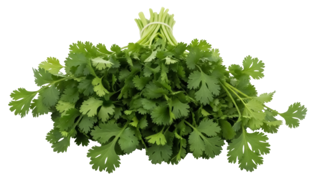 bunch of coriander leaves, isolated over a transparent background, cooking, food or diet design elements, cut-out PNG