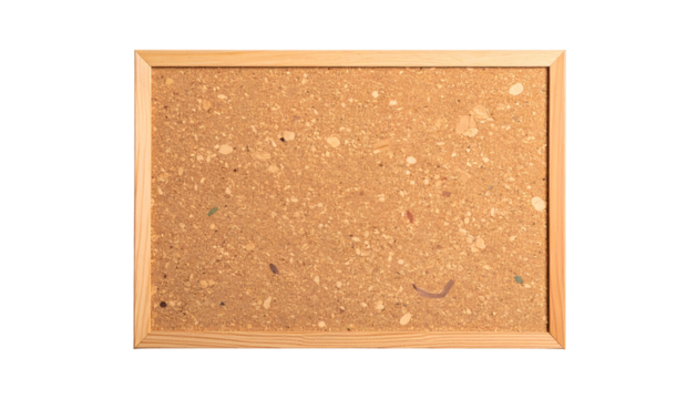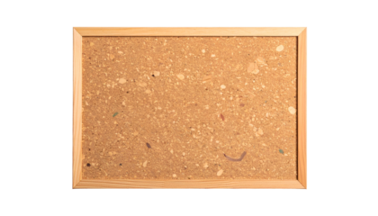 A framed corkboard surface suitable for pinning notes, reminders, or artwork.