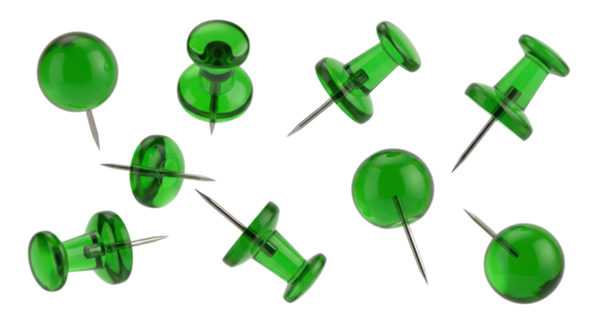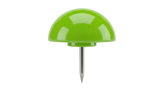 Isolated green push pin against background, thumbtack for office work or design, tack