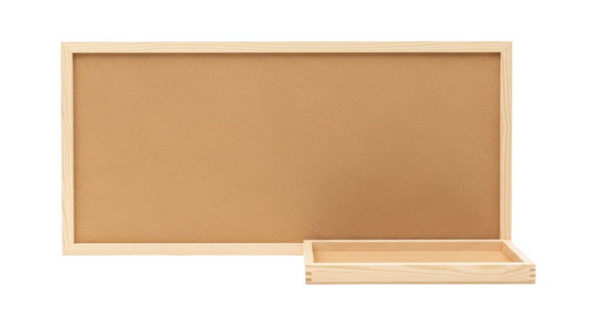 Isolated natural wood frame corkboard with tray ideal for home office and organization décor