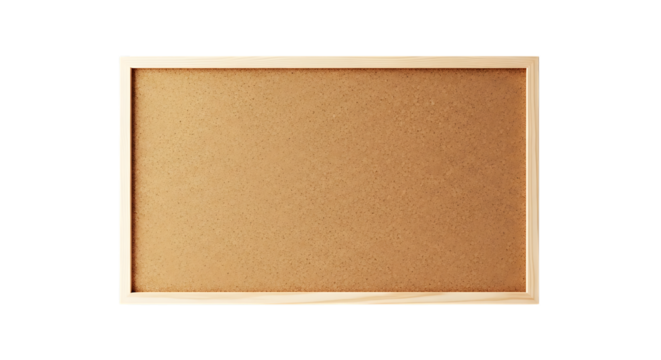 Blank cork bulletin board with a light wood frame, perfect for office or home organization isolated on transparent background