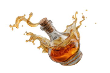 Exploding champagne bottle on transparent background