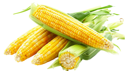 Isolated corn ears on a transparent background for clear visibility
