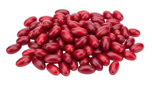 High-resolution cornelian cherry fruit isolated on transparent background, ideal for culinary design projects, organic food illustrations, and health-themed digital artwork featuring fresh natural