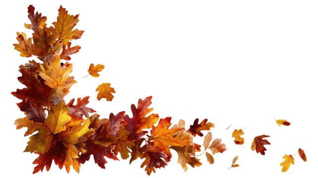 Autumn leaves border with vibrant fall colors isolated on transparent background