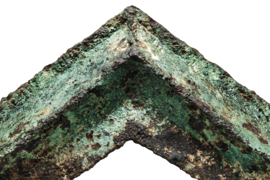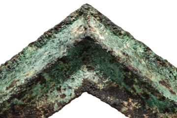 Close up of corroded bronze corner detail