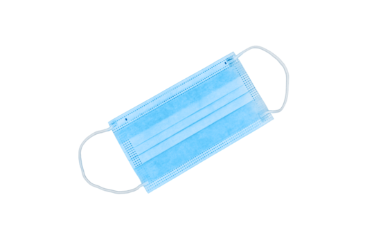 Blue medical mask , isolated on a white background. Concept of coronavirus problems, lockdown and quarantine due to the pandemic