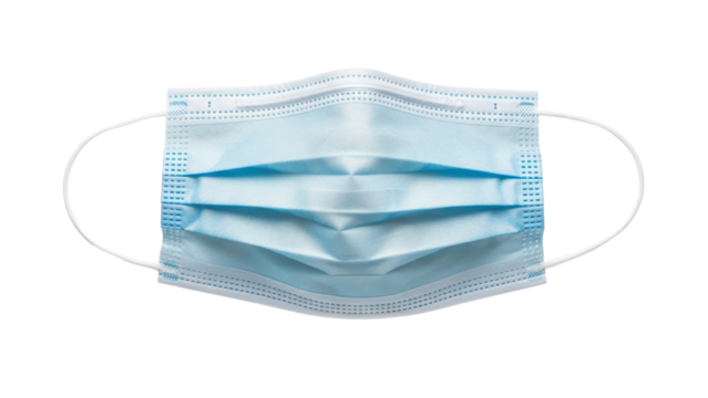 Blue Disposable Medical Surgical Face Mask isolated PNG with Transparent Background