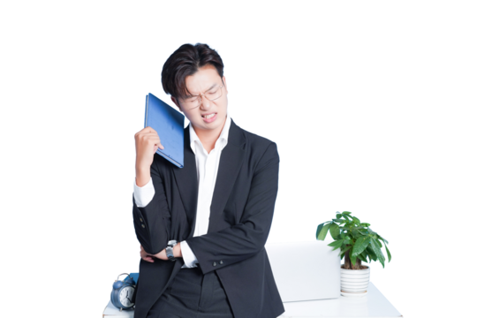 Stressed executive feeling the pressure of corporate deadlines and financial worries during challenging times