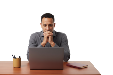 Man concentrating deeply on laptop screen, problem solving