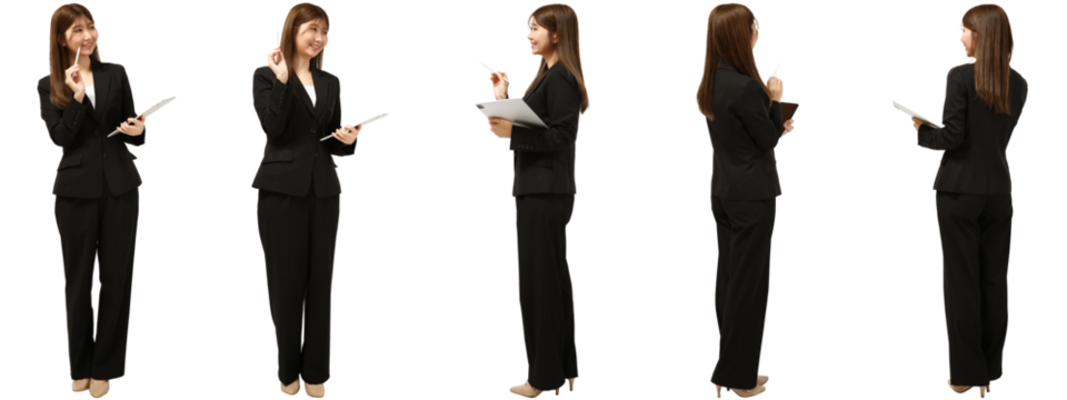 男女作業員のグループ 手作業で精密に切り抜いた背景透過全身写真PNG