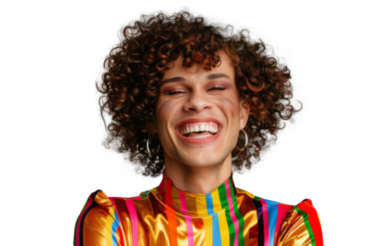 Portrait shot of Young joyful Gay man with colorful lgbt dress isolated on transparent background, Gay transgender smile and posing with trendy lifestyle.