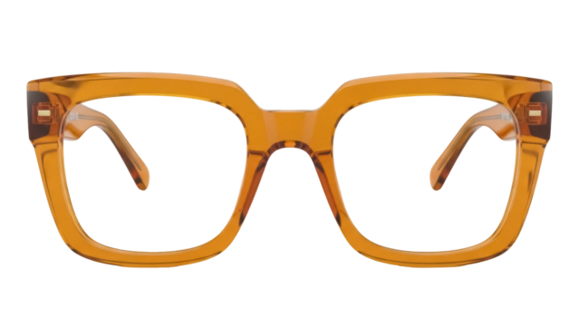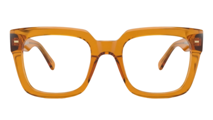 Amber eyeglasses isolated PNG on transparent background, stylish eyewear with clear lenses for vision correction and fashion accessory