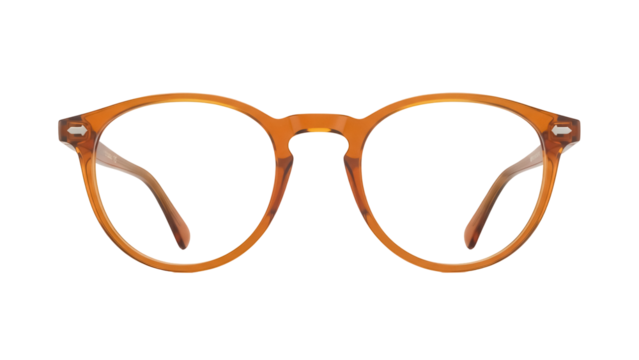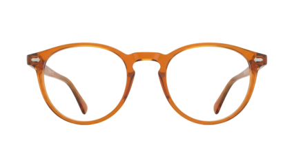 Round eyeglasses with amber frames isolated PNG on transparent background, stylish eyewear for vision correction and fashion accessory