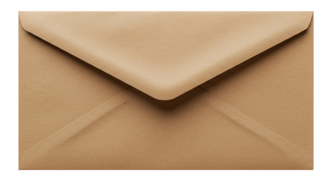 Open cardboard box with a paper envelope isolated with transparent background