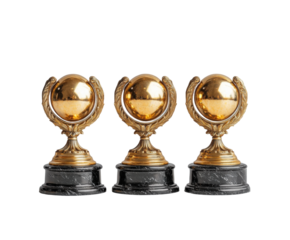 Victory celebration trophies event hall decorative awards gleaming gold isolated on transparent background