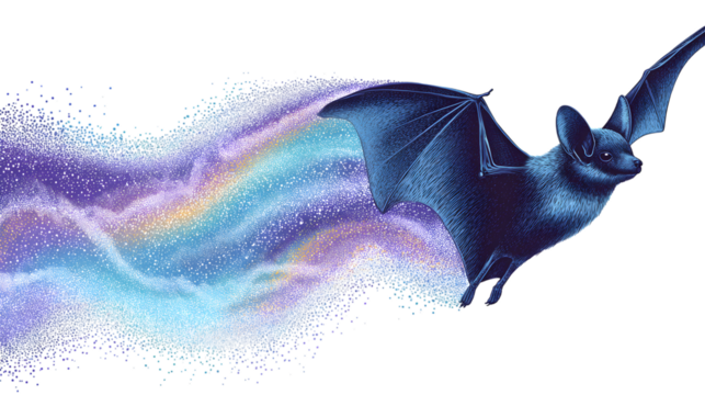 Dynamic bat soaring through vibrant nebula, a stunning illustration for creative projects isolated on white background