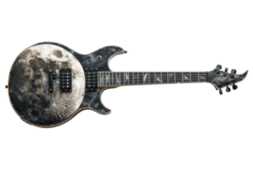 Silhouette of guitarist at concert with multicolor powder paint explosion around isolated on transparent background