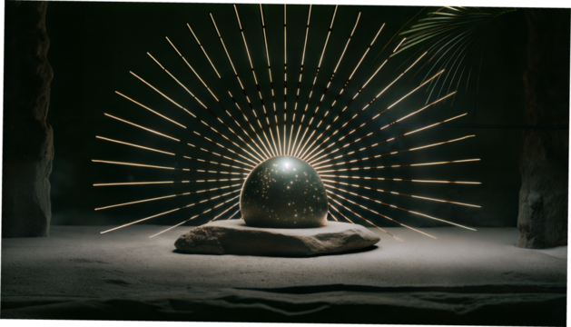 Glowing orb with radiant golden rays in a dark setting