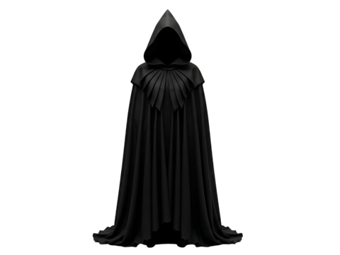 Dark Black Hooded Cloak or Robe Garment Isolated on transparent background, png