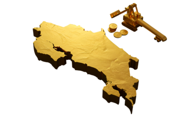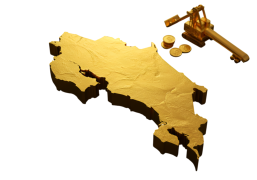 Golden Costa Rica Map With Gold Coins 3D Illustration On Black Isolated Background