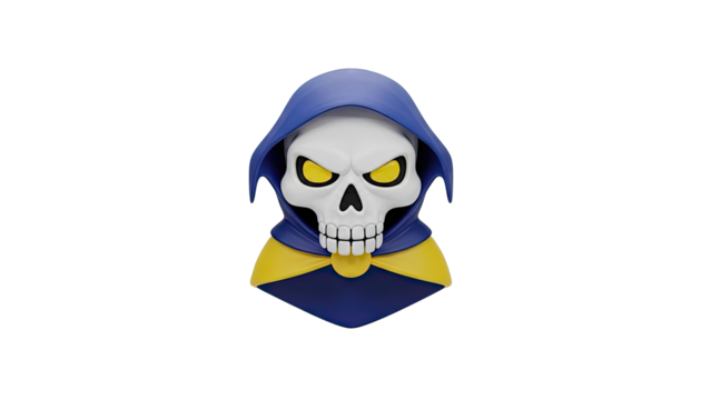 Stylized Skull Character with Blue Hood and Yellow Cape