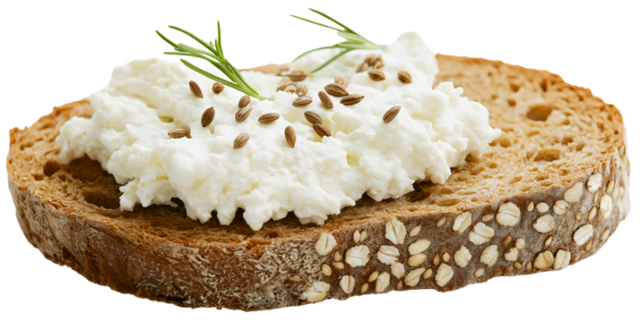 Bread slice and cheese cottage bruschetta with isolated cream snack and breakfast spread, toasted baguette with dairy homemade meal