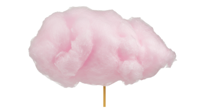 [Cotton candy floating above fluffy pink clouds] Surreal Cotton Candy Cloud Floats Above Pastel Fluff on Black Background
