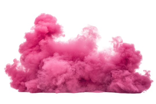 Pink cotton candy cloud formation isolated on transparent background. Pink smoke cloud isolated on white background.